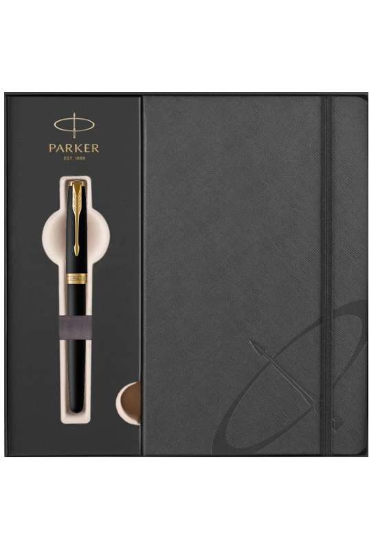 Набор Parker Sonnet Black GT (ручка роллер + блокнот) от официального дилера Parker в Октябрьске. Вы можете дополнительно заказать гравировку, которая подчеркнет Вашу оригинальность и придаст памятность статусному подарку. Все ручки Паркер поставляются в фирменном футляре.
